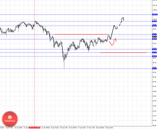По паре Доллар/Иена ключевыми уровнями являются: 100.46, 99.87, 99.49, 98.74, 98.35, 97.44, 97.18, 96.85 и 95.78. Здесь ситуация пока находится в равновесном состоянии. Краткосрочное восходящее движение, а также консолидацию, ожидаем в диапазоне 98.35 – 98.74, пробой последнего значения должен сопровождаться выраженным движением к верху, здесь цель 99.49, в коридоре 99.49 – 99.87 консолидация цены. Потенциальным значением для восходящего движения считаем уровень 100.46, по достижении которого ожидаем откат книзу. Краткосрочное нисходящее движение возможно в коридоре 97.44 – 97.18, пробой последнего значения приведет к углубленной коррекции, здесь цель 96.85, от этого уровня ожидаем ключевой разворот кверху, его пробой будет располагать к последующему развитию нисходящей структуры от 11 апреля, в данном случае потенциальная цель – 95.78.