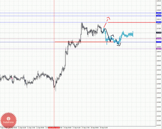 По паре Фунт/Иена ключевыми уровнями являются: 128.65, 128.49, 128.14, 127.26, 12707 и 126.71. Здесь продолжения движения кверху ожидаем после пробоя 128.14, в данном случае цель 128.49, в коридоре 128.49 – 128.65 консолидация цены, также отсюда мы ожидаем разворот книзу. Краткосрочное нисходящее движение возможно в коридоре 127.26 - 127.07, пробой последнего значения позволит рассчитывать на движение к потенциальной цели – 126.71, до этого уровня мы ожидаем оформления начальных условий для нисходящего цикла.