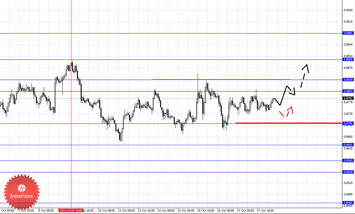 По паре Евро/Доллар продолжения движения кверху ожидаем после пробоя 1.2813. По паре Доллар/Франк цена находится в коррекции от нисходящей структуры. По паре Фунт/Доллар следим за формированием потенциала для верха от 15 октября. По паре Доллар/Иена до уровня 107.84 ожидаем оформления выраженных начальных условий. По паре Евро/Иена от 16 октября формируется потенциал для верха. По паре Фунт/Иена следим за развитием восходящей структуры от 15 октября.