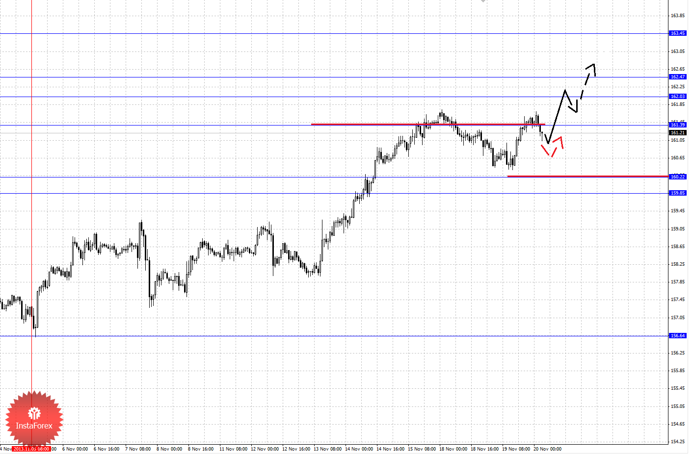 По паре Евро/Доллар и Доллар/Франк следим за структурой от 7 ноября, также необходимо обратить внимание на развитие восходящего потенциала по Канадцу. По паре Фунт/Доллар продолжаем следить за восходящей структурой от 12 ноября. По паре Доллар/Иена продолжения движения кверху ожидаем после пробоя 100.39. По паре Евро/Иена от 19 ноября формируется локальная структура для развития восходящего движения. По паре Фунт/Иена ключевые цели остались без изменения.