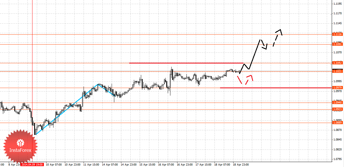 По паре Доллар/Канадский доллар ключевыми уровнями в масштабе Н1 являются: 1.1116, 1.1091, 1.1042, 1.1021, 1.0979, 1.0996, 1.0940, 1.0923 и 1.0889. Здесь мы продолжаем следить за развитием восходящего потенциала от 9 апреля. Продолжения движения кверху ожидаем после прохода ценой шумового диапазона 1.1021 – 1.1042 должен сопровождаться выраженным восходящим движением, здесь цель – 1.1091. Потенциальным значением для верха считаем уровень 1.1116, по достижении которого ожидаем консолидацию, а также откат книзу. Краткосрочное нисходящее движение возможно после пробоя 1.0979, здесь цель – 1.0940, в коридоре 1.0940 – 1.0923 консолидация, этот диапазон является ключевой поддержкой для верха, его проход ценой будет располагать к развитию нисходящей структуры, в данном случае потенциальная цель – 1.0889.