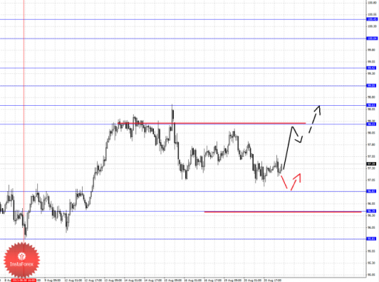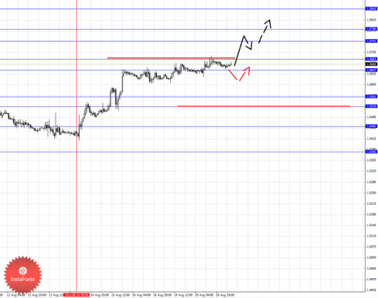 По паре Евро/Доллар следим за восходящим циклом от 15 августа. По Франку продолжения движения книзу ожидаем после пробоя 0.9130. По паре Фунт/Доллар движение кверху возможно после пробоя 1.5685. По паре Доллар/Иена цена по-прежнему находится в корректировочной зоне от восходящей структуры 8 августа. По паре Евро/Иена развитие восходящей тенденции ожидаем после пробоя 12 августа. По паре Фунт/Иена продолжения движения кверху ожидаем после пробоя 153.50.
