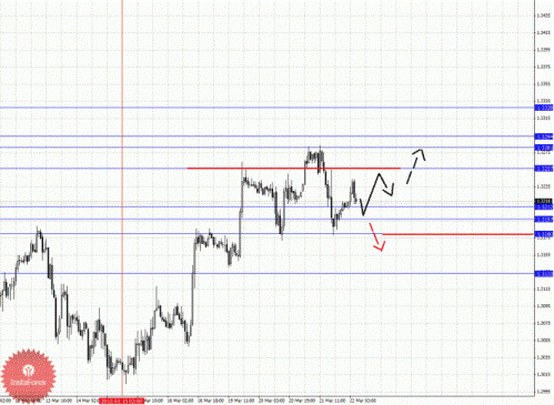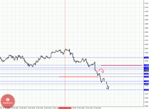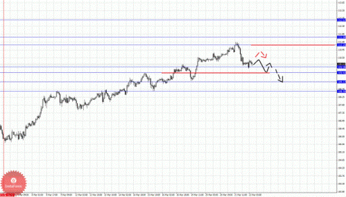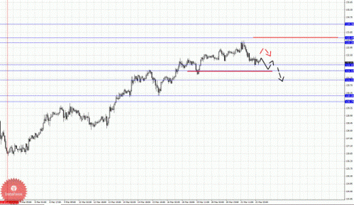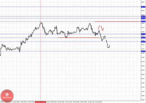 По паре Евро/Доллар основные цели остались без изменения, и на текущий момент цена находится в корректировочной зоне от восходящей структуры 15 марта. По паре Доллар/Франк от 21 марта наблюдается небольшой потенциал для развития восходящего движения (по евро есть также аналогичная структура от 21 марта). По паре Фунт/Доллар пока продолжаем следить за развитием восходящего цикла от 12 марта. По паре Доллар/Йена цена вошла в горизонтальный коридор, нисходящая структура от 15 марта здесь по-прежнему актуальна. По паре Евро/Йена цена находится в корректировочной зоне от восходящей структуры 6 марта. По паре Фунт/Йена цена также вошла в корректировочную зону от восходящего цикла 6 марта.