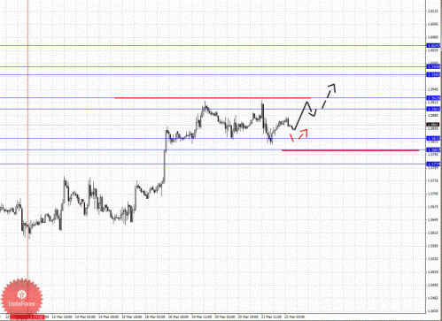 По паре Фунт/Доллар ключевыми уровнями являются: 1.6047, 1.5998, 1.5980, 1.5926, 1.5901, 1.5833, 1.5807 и 1.5774. Здесь мы продолжаем следить за восходящим циклом от 12 марта. Краткосрочное движение кверху ожидаем в коридоре 1.5901 – 1.5926, пробой последнего значения приведет к развитию выраженного движения, в данном случае цель 1.5980, в коридоре 1.5980 – 1.5998 консолидация цены. Потенциальным значением для верха считаем уровень 1.6047, по достижении которого ожидаем откат книзу. Корректировочное нисходящее движение возможно в коридоре 1.5833 – 1.5807, пробой последнего значения приведет к углубленной коррекции, здесь цель 1.5774, от этого уровня высока вероятность разворота кверху, его пробой окажет негативное влияние на последующее развитие восходящей тенденции в масштабе Н1.