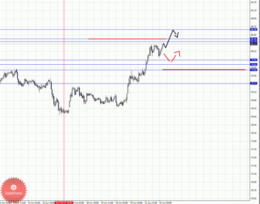 По паре Доллар/Франк и Евро/Доллар следим за развитием структуры от 15 июня. По паре Фунт/Доллар от 20 июня формируется потенциальная структура для движения книзу. По паре Доллар/Йена следим за восходящим циклом от 15 июня. По паре Евро/Йена следим за восходящей структурой от 18 июня, которую считаем локальной в масштабе Н1. По паре Фунт/Йена цели остались без изменения и здесь мы следим за локальной восходящей структурой от 15 июня.