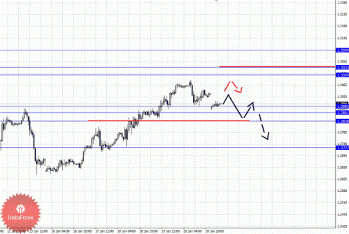 По паре Евро/Доллар важными уровнями являются: 1.3099, 1.3034, 1.3004, 1.2952, 1.2885, 1.2860, 1.2828 и 1.2727. Здесь мы продолжаем следить за восходящей структурой от 16 января, также необходимо отметить, что от 20 января формируется небольшой потенциал для нисходящей коррекции. Уровень 1.2952 является ключевым сопротивлением для верха, его пробой позволит рассчитывать на движение к 1.3004, в коридоре 1.3004 – 1.3034. Пробой уровня 1.3034 приведет к движению до 1.3099, от которого ожидаем откат книзу. Корректировочное нисходящее движение возможно в коридоре 1.2885 – 1.2860, пробой последнего значения приведет к углубленному движению, здесь цель 1.2828, от этого уровня высока вероятность разворота кверху, его пробой окажет негативное влияние на развитие восходящей структуры от 16 января. Уровень 1.2727 интересен с точки зрения среднесрочной перспективы.