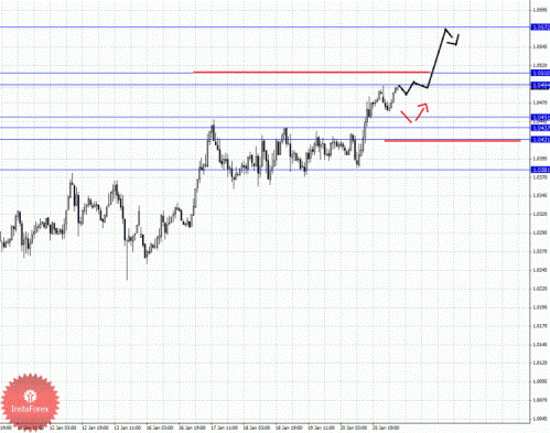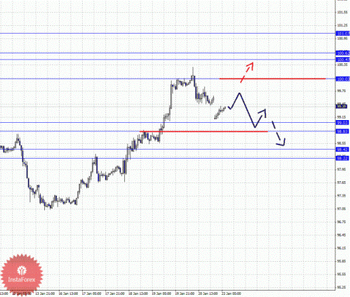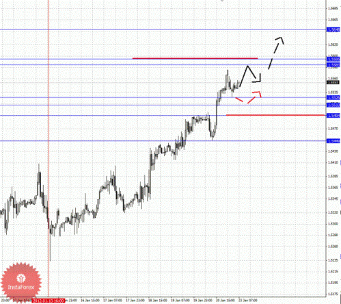 По паре Евро/Йена ключевыми уровнями являются: 101.07, 100.62, 100.47, 100.03, 99.03, 98.83, 98.42 и 98.22. Здесь продолжения движения кверху ожидаем после пробоя 100.03, в данном случае первая цель 100.47, далее ключевые цели остались без изменения. Для нисходящего движения от 20 января формируется потенциал. Краткосрочное движение книзу ожидаем в коридоре 99.03 – 98.83, пробой последнего значения должен сопровождаться импульсивным движением, здесь цель 98.42, в коридоре 98.42 – 98.22 консолидация цены.