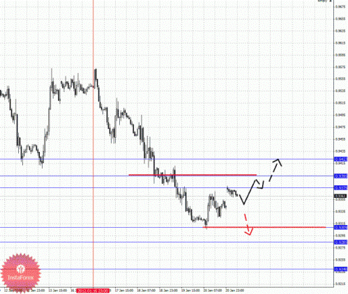 По паре Фунт/Йена ключевыми уровнями являются: 120.56, 120.12, 119.90, 119.11, 118.97, 118.78 и 118.28. Здесь мы продолжаем следить за восходящим циклом от 16 января. В коридоре 119.90 – 120.12 ожидаем краткосрочное восходящее движение, а также консолидацию цены. Потенциальным значением для верха считаем уровень 120.56, движение к которому ожидаем после пробоя 120.12. Корректировочное нисходящее движение возможно в диапазоне 119.11 – 118.97, пробой последнего значения приведет к углубленной коррекции, здесь цель 118.78, от этого уровня мы ожидаем разворот кверху, его пробой окажет негативное влияние на развитие восходящей тенденции в масштабе Н1, в данном случае потенциальная цель 118.28.