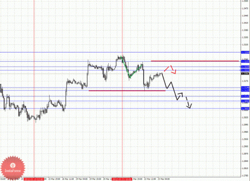 По паре Евро/Йена ключевыми уровнями являются: 111.68, 111.25, 110.51, 109.98, 109.70, 108.59, 108.34, 107.86, 107.71 и 107.22. Здесь мы следим за развитием небольшого нисходящего цикла от 21 марта. Продолжения движения книзу ожидаем после прохода ценой диапазона 108.59 – 108.34, в данном случае цель 107.86, в коридоре 107.86 – 107.71 консолидация цены. Потенциальным значением для низа считаем уровень 107.22, по достижении которого ожидаем откат кверху. Краткосрочное восходящее движение возможно в диапазоне 109.70 – 109.94, пробой последнего значения окажет негативное влияние на развитие нисходящей структуры от 21 марта, в данном случае потенциальная цель 110.51. Уровень 110.51 является ключевым сопротивлением для верха, его пробой будет располагать к дальнейшему развитию восходящей тенденции в масштабе Н1, в данном случае первая цель 111.25.