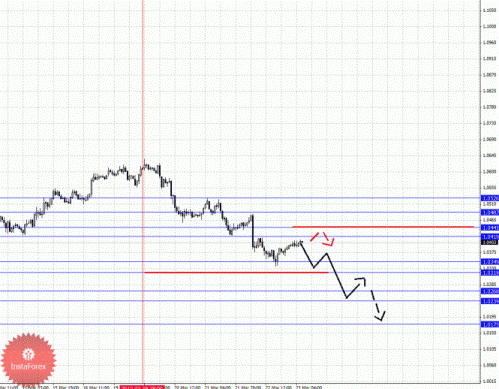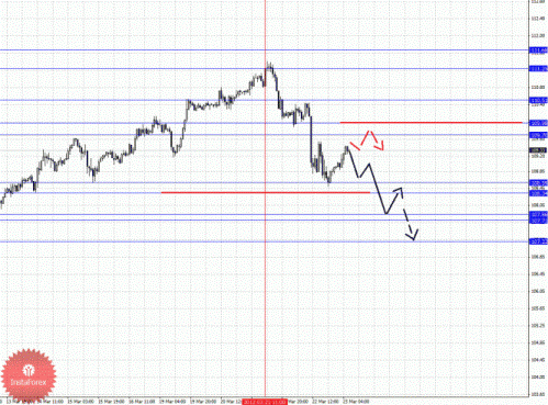 По паре Евро/Доллар, несмотря на формирование потенциала для нисходящего движения от 21 марта, восходящая структура от 15 марта все еще остается актуальной для определения целей. По паре Доллар/Франк продолжаем следить за небольшими начальными условиями для верха от 21 марта. По паре Фунт/Доллар цена по-прежнему находится в корректировочной зоне от восходящей структуры 12 марта. По паре Доллар/Йена следим за нисходящим циклом от 15 марта. По паре Евро/Йена следим за небольшим нисходящим циклом от 21 марта, который впоследствии можно рассмотреть в качестве больших начальных условий, как это было сделано по паре Фунт/Йена.