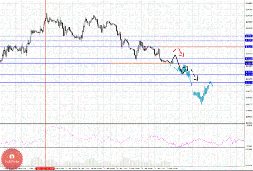 По паре Фунт/Йена ключевыми уровнями являются: 123.93, 123.14, 122.92, 122.16, 121.80, 121.63, 121.42 и 120.86. Здесь основные цели остались без изменения, и мы продолжаем следить за восходящей структурой от 14 декабря. В коридоре 122.92 – 123.14 консолидация цены, отсюда высока вероятность разворота книзу. Пробой уровня 123.14 будет сопровождаться неустойчивым движением кверху, здесь потенциальная цель – 123.93, однако уровень может быть не достигнут ценой, наиболее рационально работать от 123.93, при его достижении. Уровень 122.16 является ключевой поддержкой для верха, его пробой позволит рассчитывать на движение к 121.80, в коридоре 121.80 – 121.63 мы ожидаем краткосрочное нисходящее движение, пробой последнего значения приведет к движению до 121.42, от этого уровня мы ожидаем разворот кверху, его пробой окажет негативное влияние на развитие восходящей тенденции в масштабе Н1. Уровень 120.86 интересен с точки зрения среднесрочной перспективы.