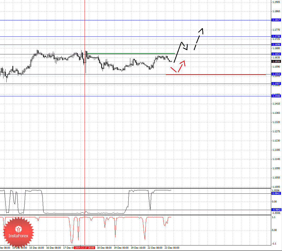 По паре Фунт/Доллар ключевыми уровнями в масштабе Н1 являются: 1.5693, 1.5593, 1.5542, 1.5486, 1.5452 и 1.5396. Здесь мы продолжаем следить за формированием нисходящей структуры от 16 декабря, на текущий момент цена находится в коррекции. Продолжения движения книзу ожидаем после пробоя 1.5593, здесь первая цель - 1.5542, пробой которого, в свою очередь, позволит рассчитывать на движение к 1.5486, возле этого уровня консолидация цены. Проход ценой шумового диапазона 1.5486 – 1.5452 позволит рассчитывать на движение к потенциальной цели – 1.5396, по достижении которого ожидаем откат в коррекцию. Уровень 1.5693 является ключевой поддержкой для нисходящей структуры, его проход ценой будет располагать к развитию восходящего движения, в данном случае потенциальная цель – 1.5787.