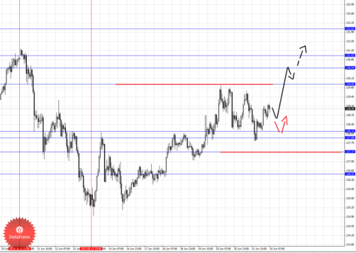 По паре Евро/Иена ключевыми уровнями являются: 132.02, 131.02, 130.54, 129.92, 128.15, 127.89, 127.37 и 126.52. Здесь продолжения развития восходящей структуры от 13 июня ожидаем после пробоя 129.92, в данном случае цель 130.54, в коридоре 130.54–131.02 консолидация цены. Пробой уровня 131.02 должен сопровождаться выраженным восходящим движением, в данном случае потенциальная цель – 132.02, возле этого уровня консолидация. Краткосрочное нисходящее движение возможно в коридоре 128.15–127.89, пробой последнего значения приведет к углубленному движению, здесь цель 127.37, этот уровень является ключевой поддержкой для верха, его проход ценой будет располагать к формированию нисходящей структуры, в данном случае потенциальная цель – 126.52.