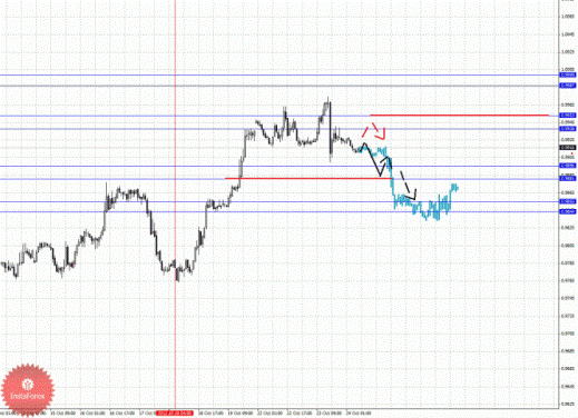 По паре Евро/Доллар продолжаем следить за нисходящей структурой от 17 октября. По паре Доллар/Франк восходящую структуру от 17 октября рассмотрели в качестве среднесрочных начальных условий. По паре Фунт/Доллар следим за нисходящей структурой от 17 октября. По паре Доллар/Иена ключевые цели пока остались без изменения. По паре Евро/Иена цена близка к отмене развития восходящей тенденции в масштабе Н1. По паре Фунт/Иена отмены восходящей структуры от 22 октября, ожидаем после пробоя 126.84.
