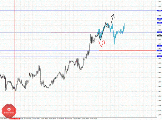 По паре Доллар/Канадский доллар ключевыми уровнями являются: 0.9996, 0.9978, 0.9970, 0.9950, 0.9921, 0.9911 и 0.9899. Здесь продолжения развития восходящего цикла от 13 декабря ожидаем после пробоя 0.9950, в данном случае цель 0.9970, в коридоре 0.9970 – 0.9978 консолидация цены. Пробой уровня 0.9978 позволит рассчитывать на движение к потенциальной цели – 0.9996, по достижении этого уровня ожидаем откат книзу. Краткосрочное нисходящее движение возможно в коридоре 0.9921 – 0.9911, пробой последнего значения приведет к углубленной коррекции, здесь цель 0.9899, до этого уровня мы ожидаем оформления потенциальных начальных условий для развития нисходящего цикла.