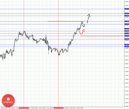 Здесь мы продолжаем следить за нисходящей структурой от 18 января. По паре Доллар/Франк следим за небольшим нисходящим циклом от 18 января, его отмены ожидаем после пробоя 0.9328. По паре Фунт/Доллар нисходящей цикл от 10 января еще является актуальным, для верха здесь не наблюдается выраженных начальных условий и данное движение рассматриваем в качестве коррекции. По паре Доллар/Иена цена отменила развитие нисходящей тенденции и здесь мы следим за восходящей структурой от 23 января. По парам Евро/Иена и Фунт/Иена также следим за восходящей структурой от 23 января.