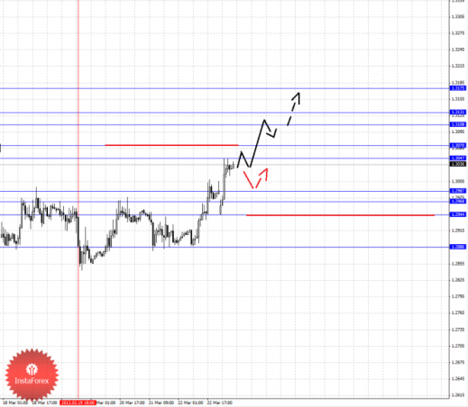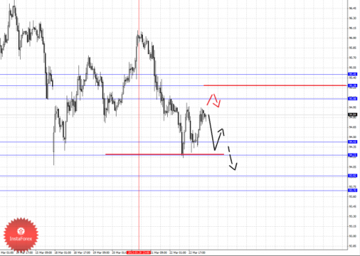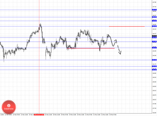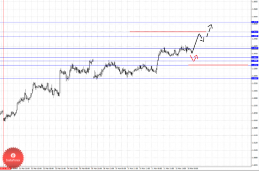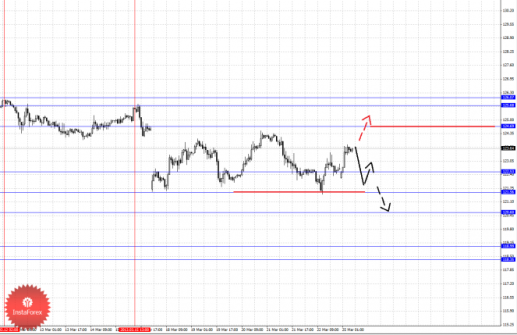 По паре Евро/Доллар следим за развитием восходящего цикла от 19 марта. По паре Доллар/Франк ожидаем продолжения развития нисходящей структуры от 14 марта. По паре Фунт/Доллар следим за локальной восходящей структурой от 20 марта. По паре Доллар/Иена цена отменила формирование восходящего потенциала и здесь мы следим за нисходящей структурой от 20 марта. По паре Евро/Иена цена отменила восходящую структуру от 15 марта и для продолжения движения кверху необходимы новые локальные начальные условия. По паре Фунт/Иена ключевые цели пока остаются без изменения, здесь мы склоняемся к нисходящему движению.
