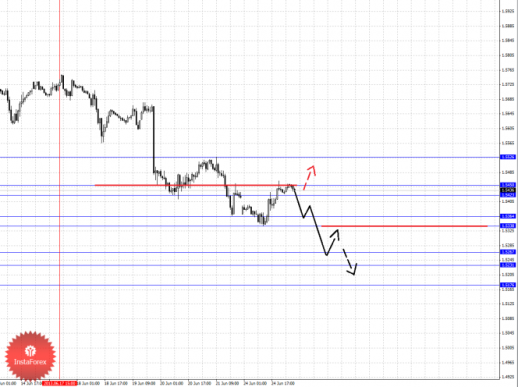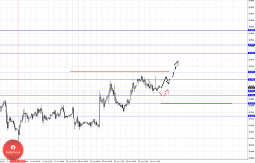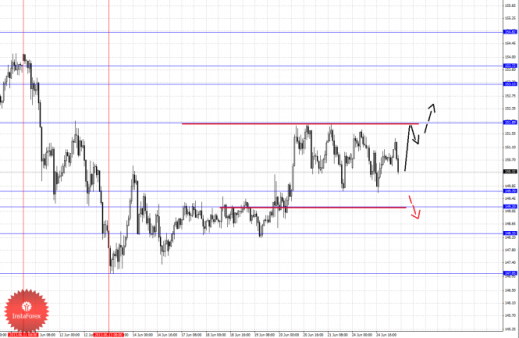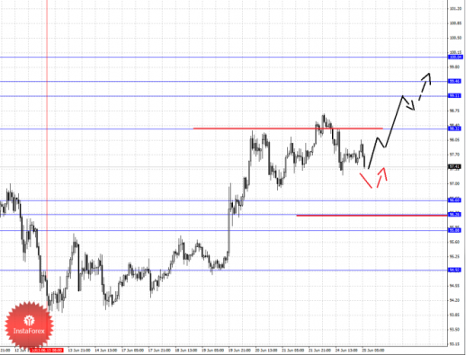 По паре Евро/Доллар продолжаем следить за формированием нисходящей структуры от 19 июня. По паре Доллар/Франк продолжения движения кверху ожидаем после пробоя 0.9395. По паре Фунт/Доллар следим за нисходящим циклом от 17 июня. По паре Доллар/Иена продолжения движения кверху ожидаем после пробоя 98.32. По паре Евро/Иена от 20 июня формируется потенциал для нисходящего движения, развитие которого ожидаем после пробоя 127.00. По паре Фунт/Иена отмены развития восходящего цикла от 13 июня ожидаем после пробоя 149.20.