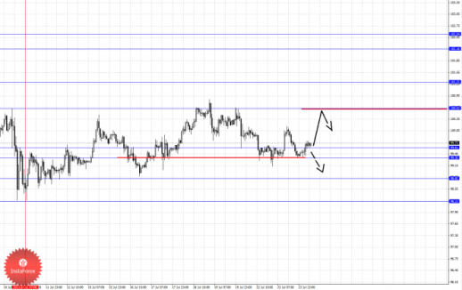По паре Доллар/Иена ключевыми уровнями являются: 102.54, 102.16, 101.31, 100.63, 99.61, 99.35, 98.82 и 98.23. Здесь ключевые цели пока остались без изменения, однако на текущий момент цена близка к отмене восходящей структуры от 11 июля. Продолжения движения кверху ожидаем после пробоя 100.63, в данном случае цель – 101.30, пробой которой, в свою очередь, должен сопровождаться выраженным восходящим движением, здесь цель – 102.16. Потенциальным значением для верха считаем уровень 102.54, по достижении которого ожидаем консолидацию. Краткосрочное нисходящее движение возможно в коридоре 99.61–99.35, пробой последнего значения приведет к углубленному движению, здесь цель – 98.82, этот уровень является ключевой поддержкой для верха, его пробой будет располагать к развитию нисходящей структуры, в данном случае первая цель – 98.23.
