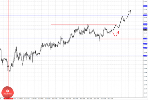 По паре Евро/Доллар и Доллар/Франк продолжаем следить за структурой от 9 июля. По паре Фунт/Доллар продолжаем следить за восходящей структурой от 9 июля. По паре Доллар/Иена продолжения развития восходящей структуры от 11 июля ожидаем после пробоя 110.65. По паре Евро/Иена мы расширили потенциал для верха до уровня 134.28. По паре Фунт/Иена продолжаем следить за восходящим циклом от 10 июля.