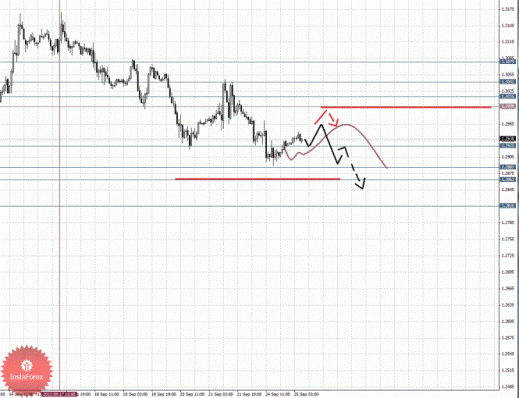 По паре Евро/Доллар важными уровнями являются: 1.3079, 1.3042, 1.3015, 1.2998, 1.2925, 1.2887, 1.2863 и 1.2816. Здесь продолжения развития нисходящей структуры от 17 сентября ожидаем после пробоя 1.2925, в данном случае цель 1.2887, в коридоре 1.2887 – 1.2863 консолидация цены. Потенциальным значением для низа считаем уровень 1.2816, по достижении которого ожидаем откат кверху. Краткосрочное восходящее движение возможно в коридоре 1.2998 – 1.3015, пробой последнего значения приведет к углубленному движению, здесь цель 1.3042, от этого уровня высока вероятность разворота книзу, его пробой будет располагать к развитию восходящей структуры, в данном случае потенциальная цель – 1.3079.