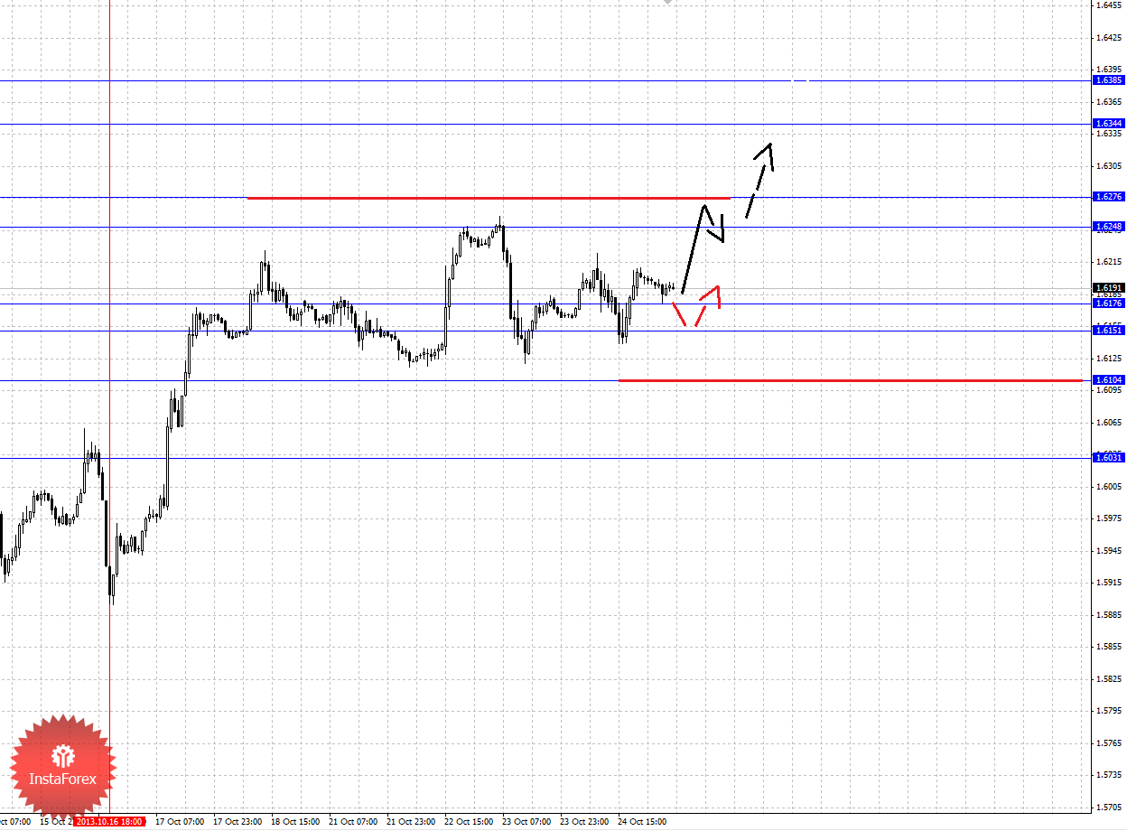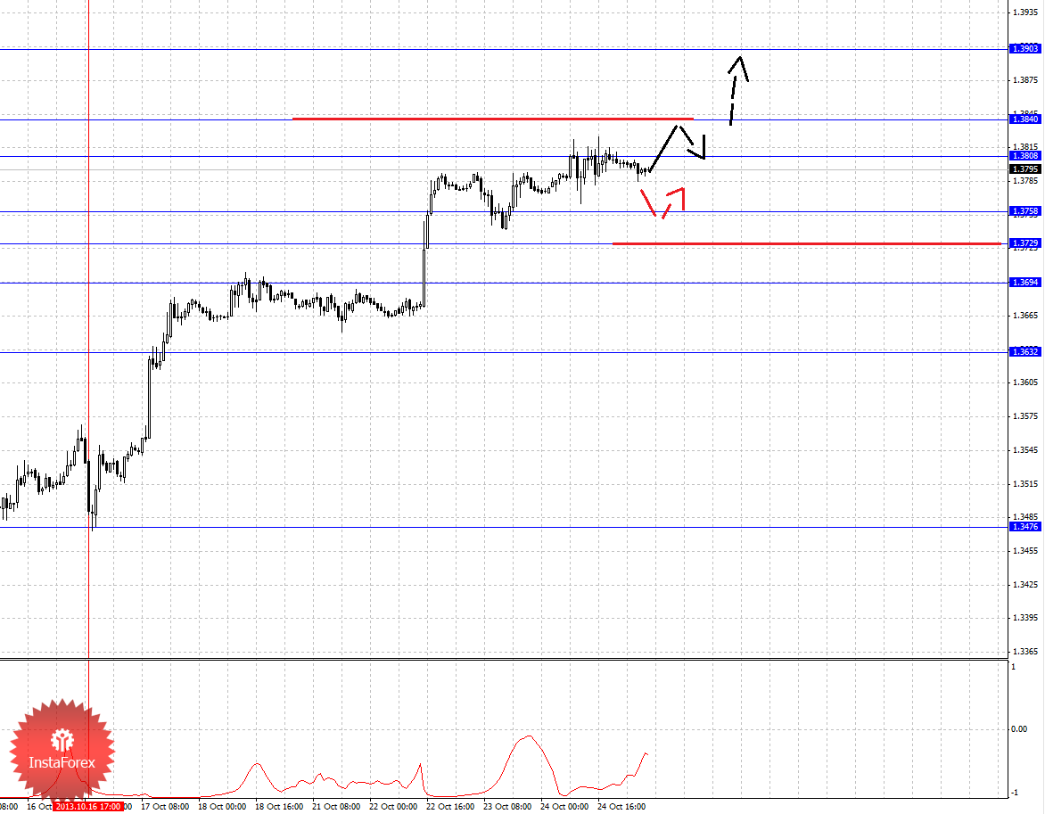 По паре Евро/Доллар важными уровнями являются: 1.3903, 1.3840, 1.3808, 1.3758, 1.3729, 1.3694 и 1.3632. Здесь восходящую структуру от 16 октября рассматриваем в качестве среднесрочных начальных условий. Продолжения движения кверху ожидаем после пробоя 1.3808, в данном случае цель 1.3840, возле этого уровня консолидация цены. Пробой 1.3840 должен сопровождаться выраженным восходящим движением, в данном случае потенциальная цель – 1.3903, по достижении этого уровня ожидаем консолидированное движение, а также откат книзу. Краткосрочное нисходящее движение возможно в коридоре 1.3758 – 1.3729, пробой последнего значения приведет к углубленной коррекции, здесь цель – 1.3694, от этого уровня мы ожидаем ключевой разворот кверху, его проход ценой будет располагать развитию нисходящей структуры, в данном случае потенциальная цель – 1.3632.
