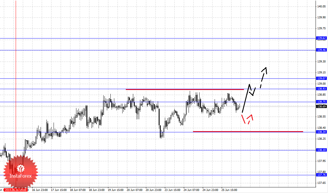 По паре Евро/Иена ключевыми уровнями в масштабе Н1 являются: 139.62, 139.46, 139.07, 138.93, 138.75, 138.34, 138.10 и 137.76. Здесь, мы продолжаем следить за формированием восходящей структуры от 16 июня. Продолжения движения к верху, ожидаем после пробоя 138.75, в данном случае цель – 138.93, возле этого уровня консолидация цены. Проход ценой шумового диапазона 138.93 – 139.07 должен сопровождаться выраженным восходящим движением, в данном случае цель – 139.46. Потенциальным значением для верха, считаем уровень 139.62, по достижении которого, ожидаем консолидацию. Краткосрочное нисходящее движение, возможно в диапазоне 138.34 – 138.10, отсюда высока вероятность разворота к верху, пробой уровня 138.10 будет располагать к развитию нисходящего движения, здесь первая цель – 137.76.
