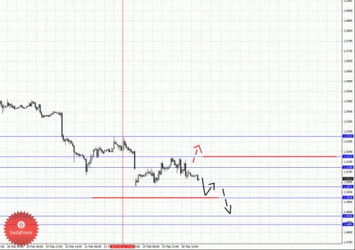 По паре Фунт/Доллар ключевыми уровнями являются: 1.5322, 1.5222, 1.5168, 1.5071, 1.5018, 1.4926 и 1.4884. Здесь, нисходящую структуру от 22 февраля рассматриваем в качестве локального потенциала для продолжения движения книзу. Краткосрочное нисходящее движение ожидаем в коридоре 1.5071 – 1.5018, пробой последнего значения должен сопровождаться выраженным нисходящим движением, в данном случае цель 1.4926. Потенциальным значением для низа считаем уровень 1.4884, по достижении которого ожидаем консолидацию, а также отсюда высока вероятность разворота кверху. Краткосрочное восходящее движение возможно в коридоре 1.5168 – 1.5222, пробой последнего значения будет располагать к формированию восходящей структуры, в данном случае потенциальная цель – 1.5322, до этого уровня ожидаем оформления выраженных начальных условий.