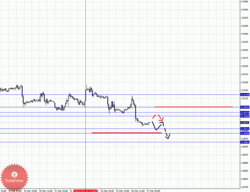 По паре Евро/Доллар продолжаем следить за локальным восходящим циклом от 22 марта. По паре Доллар/Франк наблюдаем аналогичную картину относительно Евро, только в противоположном направлении. По паре Фунт/Доллар следим за развитием ситуации от 22 марта. По паре Доллар/Йена ключевые уровни пока остались без изменения. По паре Евро/Йена продолжения движения верху ожидаем после пробоя 111.38, важно отметить, что нисходящая структура пока актуальна для определения целей. По паре Фунт/Йена уровень 132.41 является ключевой поддержкой для низа, его пробой приведет к развитию восходящей структуры от 21 марта.