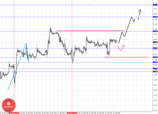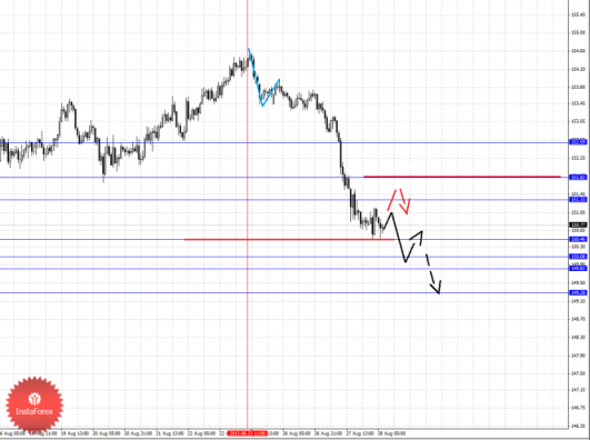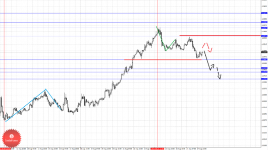 По паре Евро/Доллар ожидаем развития восходящего движения, также следим за ситуацией по Канадскому доллару. По паре Доллар/Франк более не рассматриваем восходящую структуру от 20 августа. По паре Фунт/Доллар следим за развитием нисходящей структуры от 21 августа. По паре Доллар/Иена для продолжения восходящей тенденции в масштабе Н1 необходимо оформление локальной структуры. По паре Евро/Иена мы перешли в масштаб М30 и следим за развитием нисходящего цикла от 23 августа. По паре Фунт/Иена следим за нисходящим циклом от 23 августа.