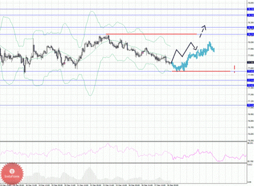 По паре Доллар/Йена ключевыми уровнями являются: 78.59, 78.50, 78.32, 78.21, 77.65. 77.51, 77.43 и 77.13. Здесь мы продолжаем следить за восходящей структурой от 8 декабря. Краткосрочное восходящее движение возможно в диапазоне 78.21 – 78.32, пробой последнего значения должен сопровождаться выраженным восходящим движением, здесь цель 78.50. Потенциальным значением для верха считаем уровень 78.59, по достижении которого ожидаем консолидированное движение в коридоре 78.50 – 78.59. Уровень 77.65 является ключевой поддержкой для верха, его пробой позволит рассчитывать на движение к 77.51, в коридоре 77.51 – 77.43 консолидация цены. Потенциальным значением для низа считаем уровень 77.13, движение к которому ожидаем после пробоя 77.13.