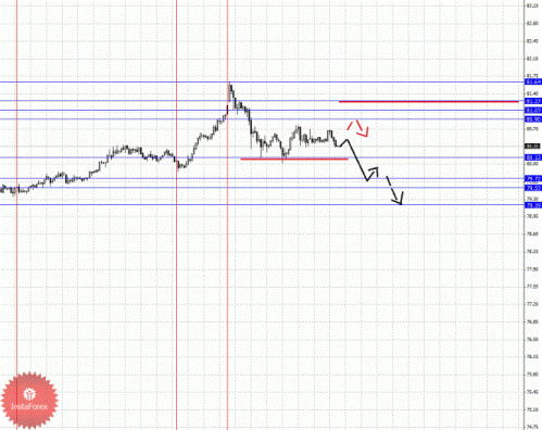 По паре Доллар/Йена ключевыми уровнями являются: 81.64, 81.27, 81.07, 80.90, 80.13, 79.72, 79.53 и 79.19. Здесь ключевые цели остались без изменения, и мы продолжаем следить за формированием нисходящей структуры от 24 февраля, однако начальные условия, на текущий момент, еще неопределены окончательно (возможна коррекция ключевых целей). Продолжения движения книзу ожидаем после пробоя 80.13, в данном случае цель 79.72, в коридоре 79.72 – 79.53 консолидация цены. Потенциальным значением для низа считаем уровень 79.19, по достижении которого ожидаем откат кверху. Корректировочное восходящее движение возможно в коридоре 80.90 – 81.07, пробой последнего значения приведет к углубленному движению, здесь цель 81.27, пробой которого, в свою очередь, приведет к отмене нисходящей структуры, в данном случае потенциальная цель – 81.64.