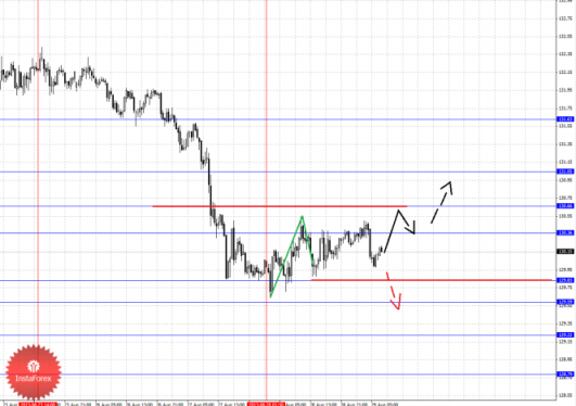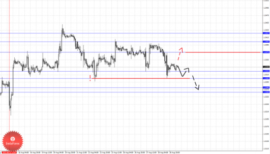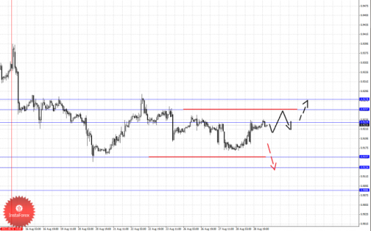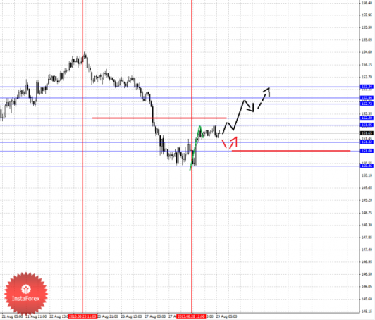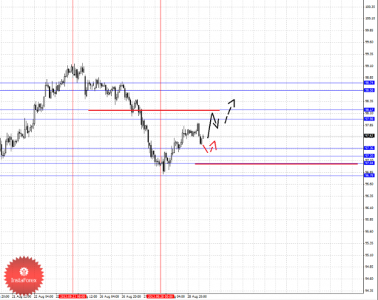 По паре Евро/Доллар отмены развития восходящей структуры от 15 августа ожидаем после пробоя 1.3305. По паре Доллар/Франк выраженных начальных условий для верха ожидаем до уровня 0.9257. По паре Фунт/Доллар цена находится в корректировочной зоне для нисходящей структуры от 21 августа. По паре Доллар/Иена от 28 августа формируется потенциал для верха. По паре Евро/Иена продолжаем следить за ситуацией в масштабе М30, также здесь от 28 августа формируется потенциал для верха. По паре Фунт/Иена мы наблюдаем формирование небольшого потенциала для развития восходящего движения от 28 августа.
