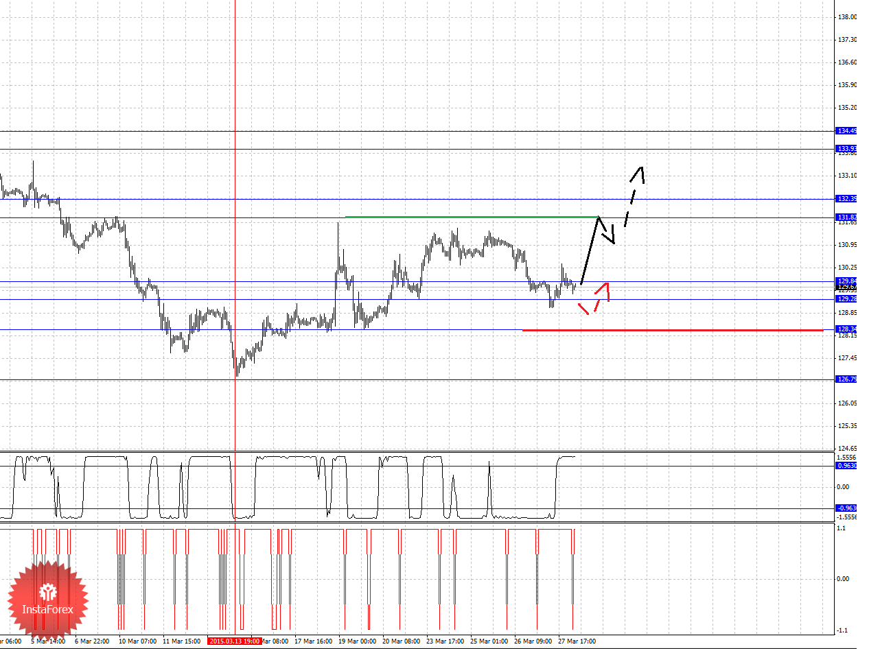 По паре Доллар/Иена ключевыми уровнями в масштабе Н1 являются: 120.28, 120.10, 119.67, 119.41, 118.99, 118.73, 118.24 и 117.90. Здесь нисходящая структура от 13 марта является основной направляющей тенденции, также от 26 марта формируется потенциал для верха в коррекции. Краткосрочное восходящее движение ожидаем в коридоре 119.41 – 119.67, пробой последнего значения должен сопровождаться выраженным движением кверху, здесь цель 120.10, в коридоре 120.10 – 120.28 консолидация цены. Краткосрочное нисходящее движение возможно в коридоре 118.99 – 118.73, пробой последнего значения продолжит развитие нисходящей тенденции, здесь цель – 118.24. Потенциальным значением для низа считаем уровень 117.90, по достижении которого ожидаем консолидацию.