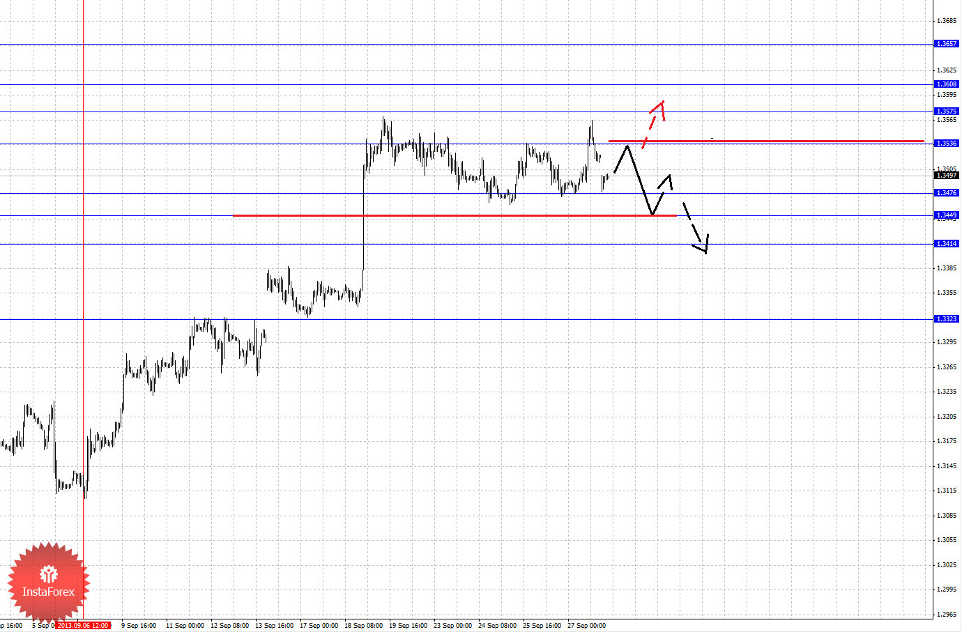 По паре Евро/Доллар важными уровнями являются: 1.3657, 1.3608, 1.3575, 1.3536, 1.3476, 1.3449, 1.3414 и 1.3323. Здесь ключевые цели пока остаются без изменения и мы не наблюдаем начальных условий для нисходящего движения, однако необходимо контролировать ситуацию по Канадцу. Продолжения восходящего цикла от 6 сентября, ожидаем после пробоя 1.3536, в данном случае цель 1.3575, в коридоре 1.3575 – 1.3608 консолидация цены, отсюда также высока вероятность разворота в корректировочную зону. Потенциальным значением для верха считаем уровень 1.3657, по достижении которого, ожидаем откат книзу. Краткосрочное нисходящее движение возможно в коридоре 1.3476 – 1.3449, пробой последнего значения приведет к углубленной коррекции, здесь цель 1.3414, этот уровень является ключевой поддержкой для верха, его проход ценой будет располагать к развитию нисходящей структуры, в данном случае потенциальная цель – 1.3323.