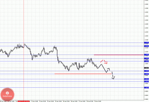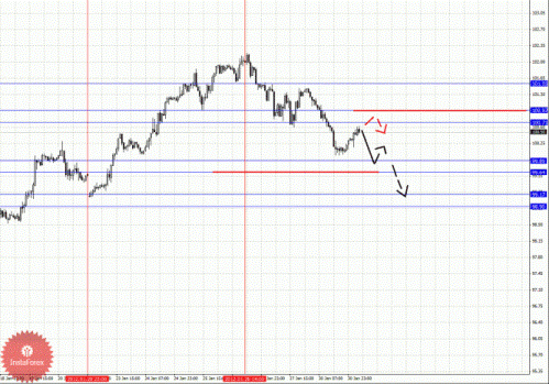 По паре Евро/Доллар восходящая структура от 23 января пока остается основной для определения целей. По паре Доллар/Франк мы продолжаем следить за нисходящей структурой от 20 января. По паре Фунт/Доллар мы не наблюдаем каких – либо начальных условий для нисходящего движения, потенциал для верха здесь достаточно ограничен. По паре Доллар/Йена продолжаем следить за нисходящим циклом от 25 января. По паре Евро/Йена следим за нисходящей структурой от 26 января. По паре Фунт/Йена продолжаем рассматривать нисходящую структуру от 25 января в качестве начальных условий для нисходящего цикла.