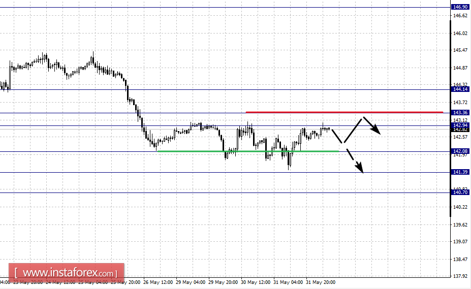 По паре Евро/Доллар следим за восходящей структурой от 30 мая. По паре Фунт/Доллар намечается движение в восходящем направлении от 31 мая. По паре Доллар/Франк следим за нисходящей структурой от 30 мая. По паре Доллар/Иена цена находится в корректировочной области от нисходящей структуры 10 мая. По паре Евро/Иена ожидаем формирования выраженных начальных условий для верха до уровня 125.38. По паре Фунт/Иена следим за нисходящей структурой от 10 мая, уровень 143.36 является ключевой поддержкой для низа.