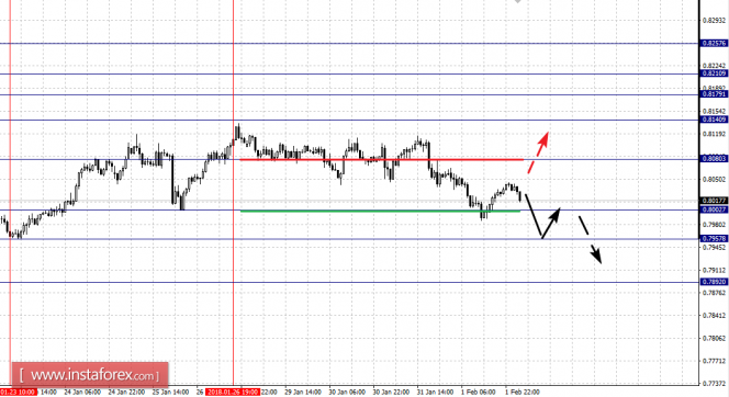 Уровень 0.8080 является ключевой поддержкой для нисходящей структуры, его проход ценой будет располагать к формированию локальных начальных условий для верха, здесь первая цель – 0.8140.