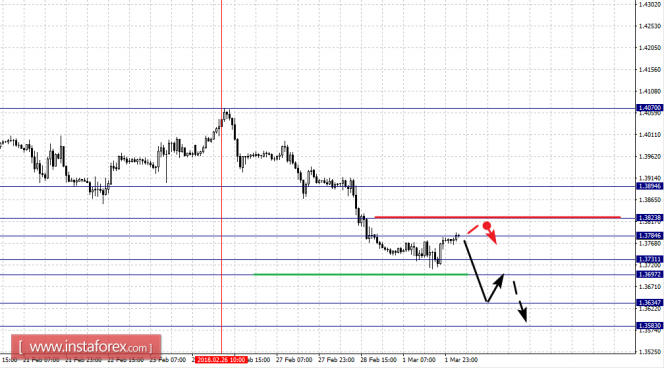 Краткосрочное восходящее движение возможно в коридоре 1.3784 – 1.3823, пробой последнего значения приведет к углубленному движению, здесь цель – 1.3894, этот уровень является ключевой поддержкой для нисходящего цикла.