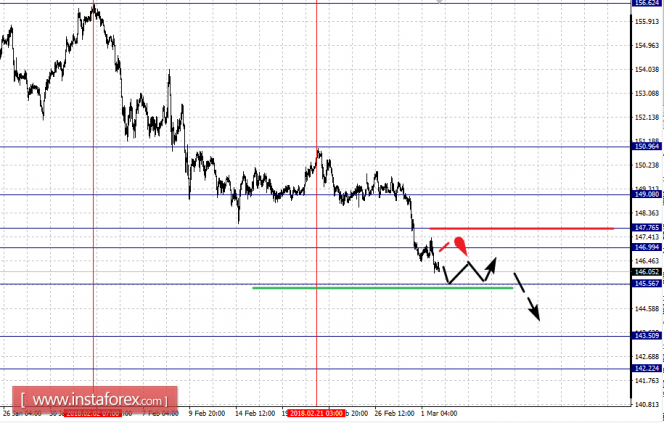 По паре Фунт/Иена ключевыми уровнями в масштабе Н1 являются: 149.08, 147.76, 146.99, 145.56, 143.50 и 142.22. Здесь мы продолжаем следить за среднесрочной нисходящей структурой от 2 февраля. На текущий момент ожидаем движение к уровню 145.56, возле которого консолидация, его пробой должен сопровождаться выраженным движением к уровню 143.50. Потенциальным значением для низа считаем уровень 142.22, по достижении которого ожидаем откат кверху.