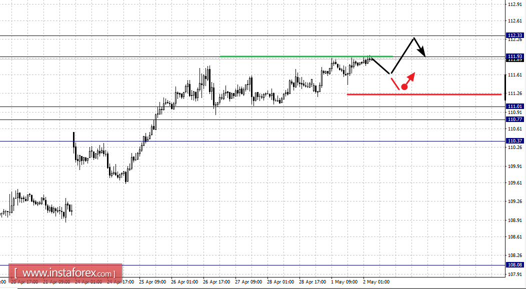 Диапазон 111.01 – 110.77 является ключевой поддержкой для верха, его проход ценой будет располагать к развитию углубленного движения, в данном случае цель – 110.37, этот уровень является ключевой поддержкой для верха.