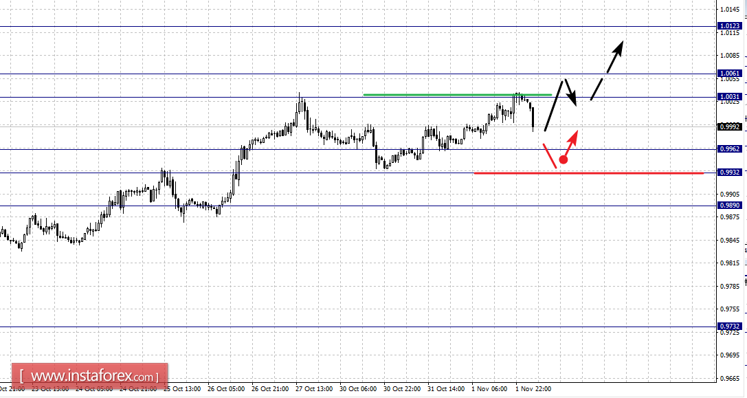 Краткосрочное нисходящее движение возможно в коридоре 0.9962 – 0.9932, пробой последнего значения приведет к углубленной коррекции, здесь цель – 0.9890, этот уровень является ключевой поддержкой для верха.