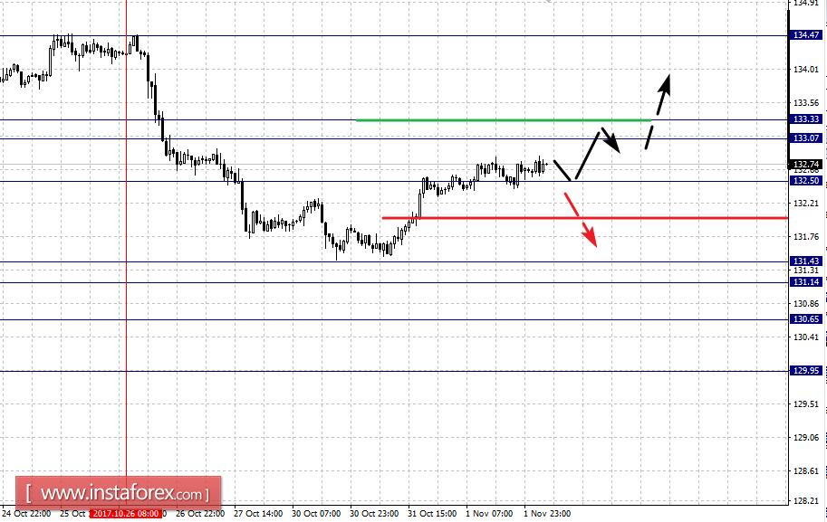 Диапазон 133.07 – 133.33 является ключевой поддержкой для нисходящей структуры, его пробой приведет к развитию восходящей структуры от 31 октября, в данном случае потенциальная цель – 134.47.