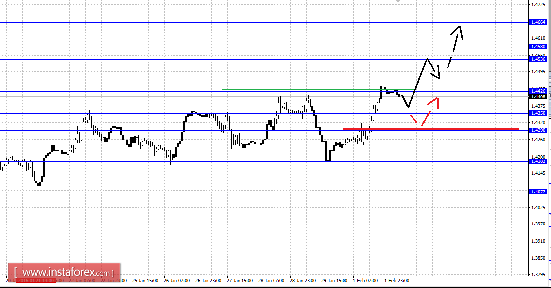 Краткосрочное нисходящее движение возможно в коридоре 1.4350 – 1.4290, пробой последнего значения будет располагать к развитию нисходящей структуры, в данном случае потенциальная цель – 1.4185.