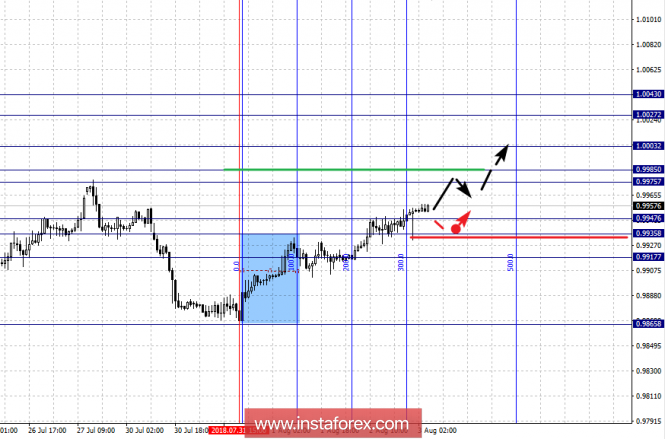 Краткосрочное нисходящее движение возможно в коридоре 0.9947 – 0.9935, пробой последнего значения приведет к углубленной коррекции, здесь цель – 0.9917, этот уровень является ключевой поддержкой для верха.