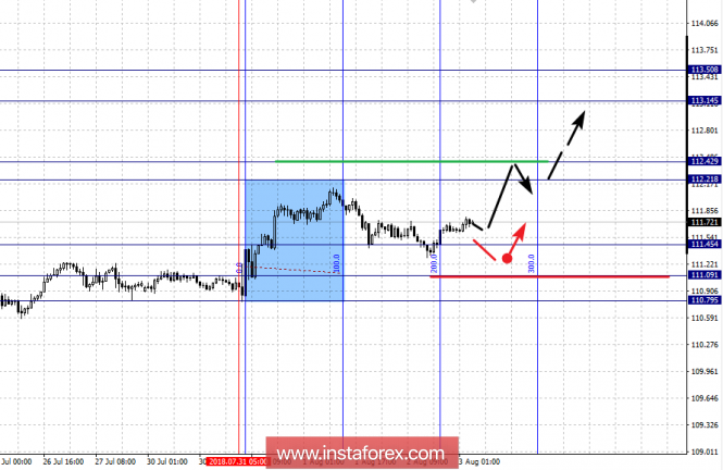 Краткосрочное нисходящее движение возможно в диапазоне 111.45 – 111.09, отсюда высока вероятность разворота кверху, пробой уровня 111.09 приведет к отмене восходящей структуры от 31 июля, в данном случае первая цель – 110.79.