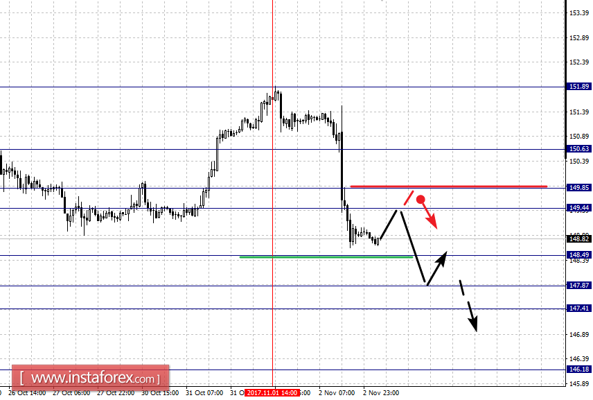 Краткосрочное восходящее движение возможно в коридоре 149.45 – 149.83, пробой последнего значения приведет к углубленному движению, здесь цель – 150.63, этот уровень является ключевой поддержкой для низа.