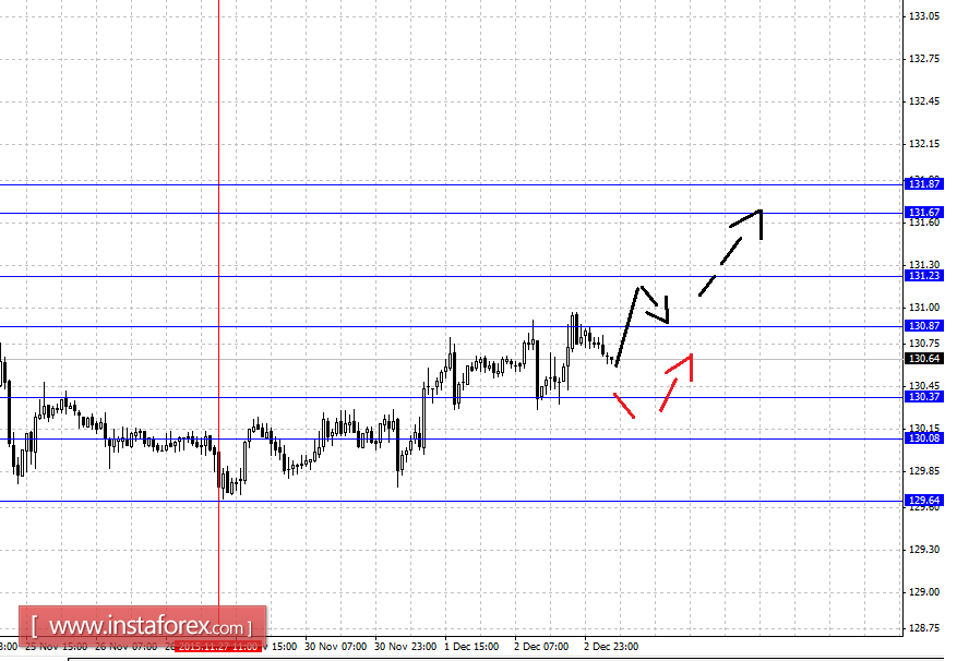 Краткосрочное нисходящее движение возможно в коридоре 130.37 – 130.08, пробой последнего значения будет располагать к развитию нисходящей структуры, здесь цель – 129.64.