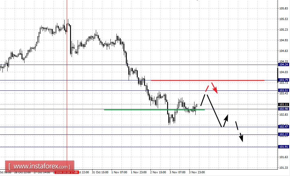 По паре Евро/Доллар цена пока находится в коррекции от восходящей структуры. По паре Фунт/Доллар продолжения движения кверху ожидаем после пробоя 1.2510. По паре Доллар/Франк преимущественно ожидаем движение в коррекцию. По паре Доллар/Иена следим за нисходящей структурой от 28 октября, продолжения движения книзу ожидаем после пробоя 102.98. По паре Евро/Иена цена вошла в стадию глубокой коррекции, продолжения движения кверху ожидаем после пробоя 114.95. По паре Фунт/Иена цена формирует локальную структуру для верха от 3 ноября.