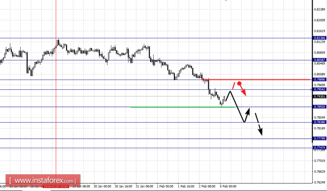 Краткосрочное восходящее движение возможно в коридоре 0.7954 – 0.7989, пробой последнего значения приведет к углубленной коррекции, здесь цель – 0.8058, этот уровень является ключевой поддержкой для верха, до него ожидаем оформления выраженных начальных условий для восходящего цикла.